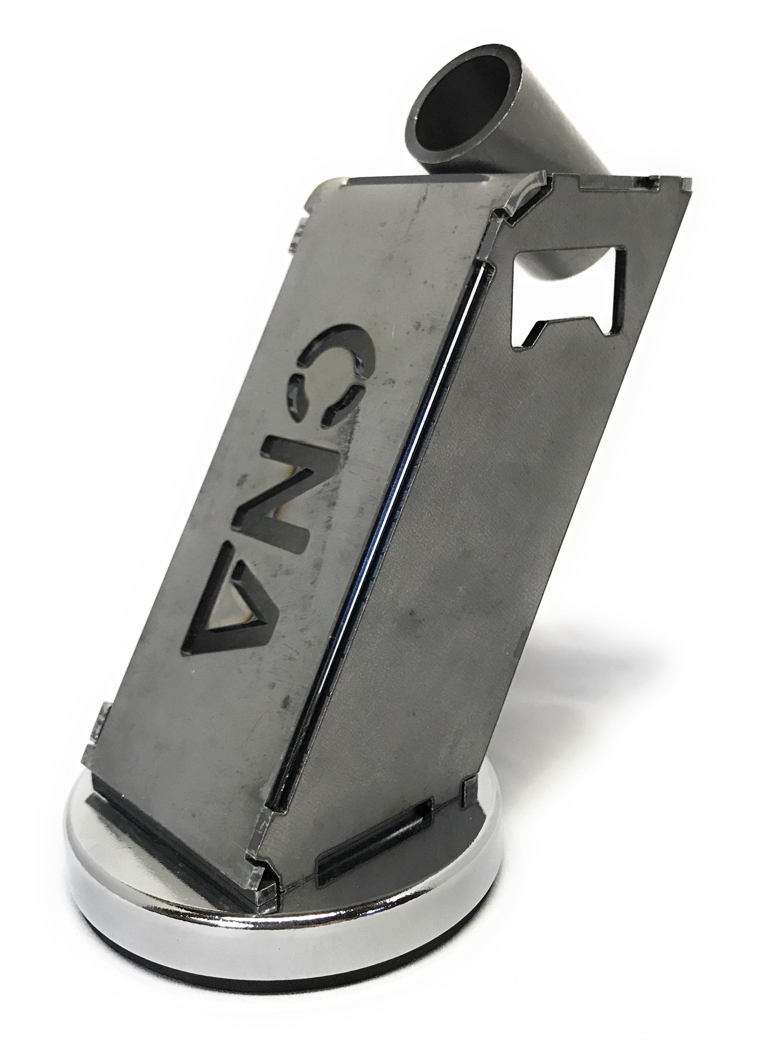 If you've spent much time behind a wire feed torch, you've undoubtedly witnessed your expensive MIG gun fly off the table with unreasonable speed at least once. Stop the flop with our CNA Fabrication torch holder. This weld-it-yourself kit is great welding practice, and a lot of fun. Once built, it becomes one of the handiest tools in your shop.